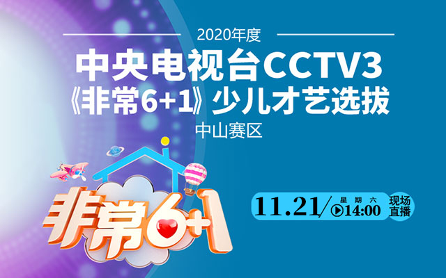 2020年度中央電視臺CCTV3《非常6+1》少兒才藝選拔中山賽區(qū)將于11月21日下午2點舉行,中山日報報業(yè)集團·中山網(wǎng)全程直播,敬請關(guān)注!