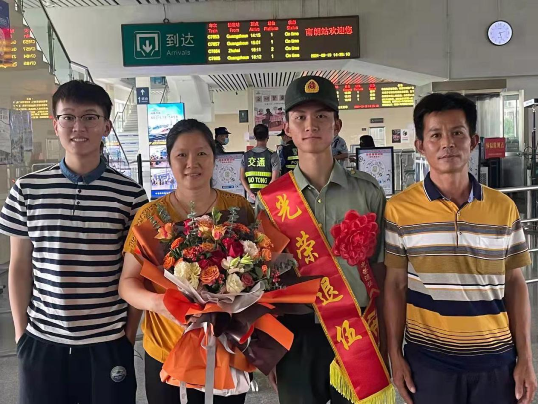 “去時鑼鼓喧天,歸來夾道歡迎。” 九月,正是退役軍人 從祖國各座軍營 返回家鄉(xiāng)的退役季 為營造“一次參軍、一生光榮”的濃厚氛圍 讓退役軍人感受到家鄉(xiāng)人民的熱情和關(guān)懷 激發(fā)老兵退伍不褪色 返鄉(xiāng)建新功的壯志熱情 9月13日下午,五桂山街道2021年首位退役軍人曾世紀(jì)光榮退役返鄉(xiāng)。街道退役軍人服務(wù)中心負(fù)責(zé)人、社區(qū)“兩委”干部、工作人員以及曾世紀(jì)的父母早早手持鮮花,在城軌南朗站等候迎接世紀(jì)回家。 回想2019入伍歡送大會時曾世紀(jì)代表五桂山即將入伍的新兵作表態(tài)發(fā)言,那年,他主動請纓,到艱苦邊遠(yuǎn)地區(qū)服役?!皡④姴粌H是個人的榮耀,也是家人的榮耀,更是鄉(xiāng)親們的榮耀。到了部隊后我會堅決服從命令,聽從指揮,刻苦訓(xùn)練,勤學(xué)本領(lǐng),絕不辜負(fù)家鄉(xiāng)人民的期望!”