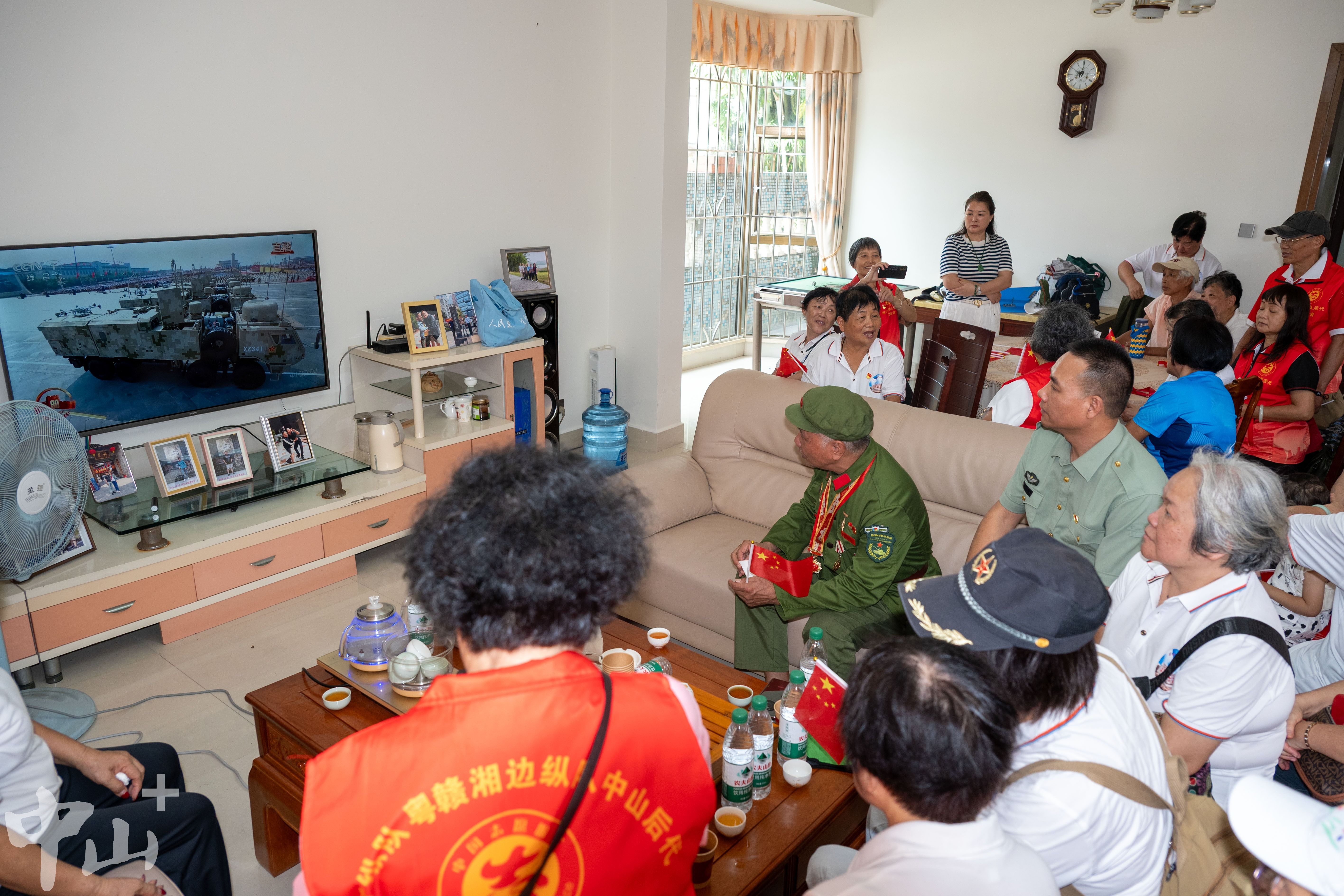 9月3日上午,廣東人民抗日游擊隊(duì)東江縱隊(duì)、粵贛湘邊縱隊(duì)中山后代和功勛老兵齊聚抗戰(zhàn)時(shí)期“廣東省革命老區(qū)村莊”——南朗街道白企村,共同觀看紀(jì)念中國(guó)人民抗日戰(zhàn)爭(zhēng)暨世界反法西斯戰(zhàn)爭(zhēng)勝利80周年大會(huì)直播盛況。他們紛紛表示,看到強(qiáng)大的祖國(guó)越來(lái)越繁榮,非常激動(dòng),也非常自豪。 9月3日上午,東江縱隊(duì)、粵贛湘邊縱隊(duì)中山后代和功勛老兵齊聚在一起,觀看閱兵盛典。見(jiàn)習(xí)記者 張景天 攝