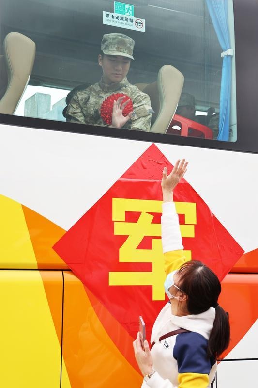 東區(qū)街道新兵潘子晨的母親鄭紅麗深情囑咐道:“兒行千里母擔(dān)憂。你們此行遠(yuǎn)離家鄉(xiāng)和親人,一定要銘記父老鄉(xiāng)親對(duì)你們的殷殷囑托,無論是在邊疆巡邏、高山上練兵,還是為祖國站崗,希望你們在部隊(duì)里傳承中山人敢為人先的闖勁,沖鋒在前,勇?lián)笕?,努力為中山人民爭光添彩!我們將為你們營造一個(gè)穩(wěn)固的‘大后方’,時(shí)刻支持你們?!?/p> 滿載著新兵的客車徐徐駛離。記者 文波 攝
