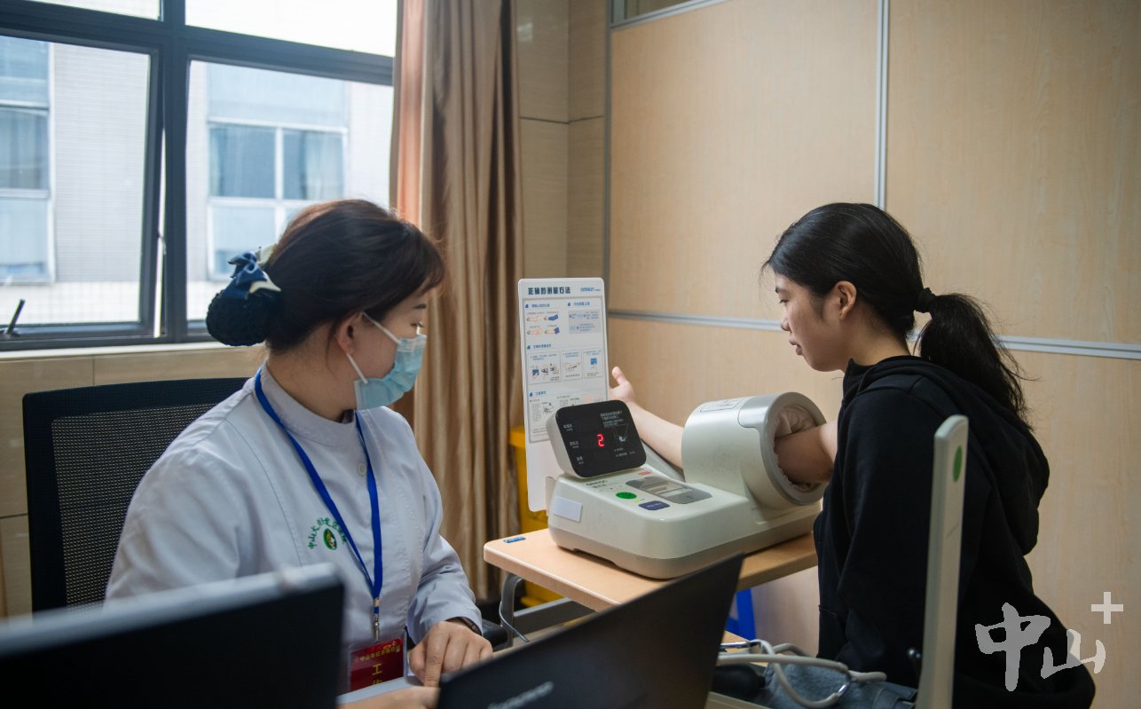 參軍同學(xué)正在測(cè)血壓。見習(xí)生 張景天 記者 明劍 攝
