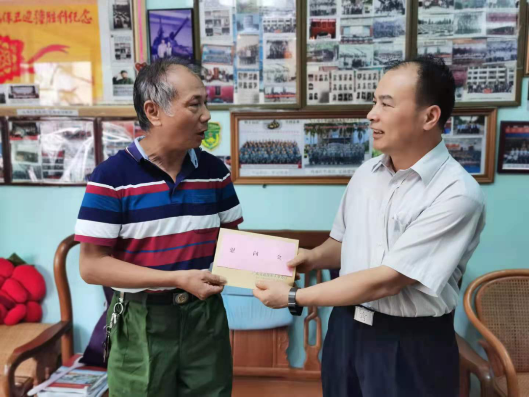 慰問組到石岐街道慰問一等功臣何思源 莊華坤一行首先來到石岐街道一等功臣何思源家中,為他送上節(jié)日祝福和問候。慰問組一行還詳細(xì)了解了何思源的家庭生活和身體狀況,并聆聽他的軍旅生涯經(jīng)歷。當(dāng)?shù)弥嗡荚词且幻凹t色宣講團(tuán)”成員,經(jīng)常利用業(yè)余時間為學(xué)校、部隊、企業(yè)、社區(qū)等開展愛國主義思想教育、革命傳統(tǒng)教育等公益活動時,莊華坤予以充分肯定,并鼓勵何思源繼續(xù)傳遞社會正能量,大力弘揚(yáng)優(yōu)秀軍人的光榮傳統(tǒng)。
