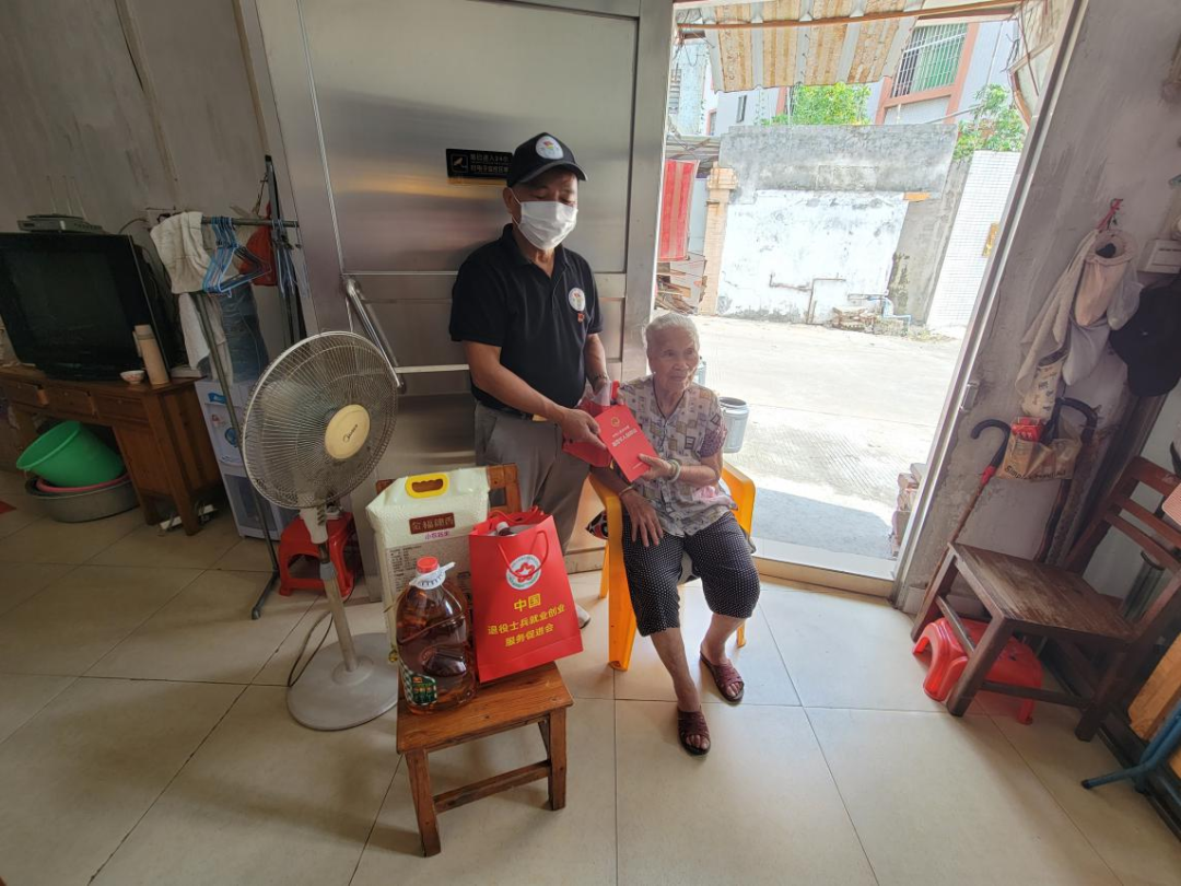 為弘揚愛國主義精神,發(fā)揚退役軍人志愿者擁軍優(yōu)屬的光榮傳統(tǒng),表達對退役軍人的崇敬和關愛,古鎮(zhèn)鎮(zhèn)退役軍人服務中心與鎮(zhèn)退役軍人紅旗志愿服務隊在“八一”建軍節(jié)來臨之際開展節(jié)日慰問活動,對15戶困難退役軍人家庭和7戶烈屬進行走訪慰問。 7月27日-29日,鎮(zhèn)退役軍人紅旗志愿服務隊隊員利用休息時間深入各村(居),帶著米、油、飲料等生活用品走進困難退役軍人家庭和烈屬家中。 每到一處,退役軍人紅旗志愿者們與退役軍人及其家屬親切交談,詢問他們的身體狀況和生活情況,并詳細了解他們目前的實際困難和需求,感謝他們?yōu)閲液蜕鐣龀龅呢暙I,囑咐他們要以積極的心態(tài)面對困難,高溫天氣下注意飲食和防暑,同時宣傳普及《退役軍人保障法》。