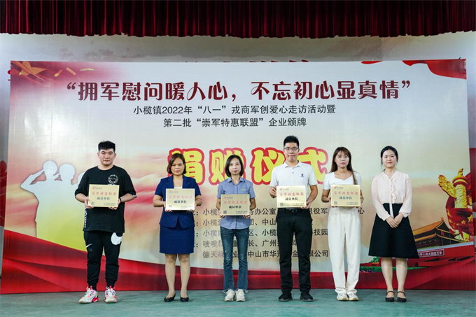 7月24日,小欖鎮(zhèn)舉行“擁軍慰問暖人心,不忘初心顯真情”——2022年“八一”愛心走訪活動啟動暨第二批“崇軍特惠聯(lián)盟”企業(yè)頒牌儀式。該鎮(zhèn)副鎮(zhèn)長鄧泳標、市退役軍人服務中心副主任高亞男及鎮(zhèn)公共服務辦、退役軍人服務中心、高沙社區(qū)、中山好人工作室相關負責人,小欖愛心助學團志愿者、愛心企業(yè)及第二批市“崇軍特惠聯(lián)盟”企業(yè)的代表以及部分優(yōu)秀退役軍人代表近100人參加了活動。