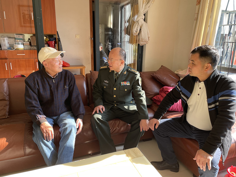 迎新春,送溫暖。1月19日,中山軍分區(qū)、中山市退役軍人事務(wù)局到南區(qū)街道聯(lián)合開展2023年春節(jié)走訪慰問(wèn)活動(dòng),慰問(wèn)因公十級(jí)殘疾軍人和現(xiàn)役軍人家屬,向他們致以新春的問(wèn)候和美好祝愿。中山軍分區(qū)大校司令員李云濤參加慰問(wèn)。 李云濤一行先后來(lái)到現(xiàn)役軍人家屬曹軍民和因公十級(jí)殘疾軍人胡華銀的家中,為他們送去慰問(wèn)金和大米、食用油、面條、春聯(lián)等慰問(wèn)品,并送去新年的祝福和關(guān)懷。 在現(xiàn)役軍人曹秦的家中,李云濤感謝其家人為部隊(duì)輸送了優(yōu)秀人才,為國(guó)防建設(shè)作出了突出貢獻(xiàn)。據(jù)了解,曹軍民的兒子曹秦于2022年9月入伍,服役于新疆烏魯木齊武警總隊(duì)。曹軍民表示,非常感謝黨和政府對(duì)現(xiàn)役軍人家庭的關(guān)心,把孩子交給部隊(duì)很放心。  ▲李云濤一行慰問(wèn)84歲高齡的老兵胡華銀(左一)。 記者 張倩 攝