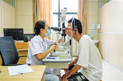 醫(yī)生對應(yīng)征青年進(jìn)行視力檢查。記者 易承樂 攝