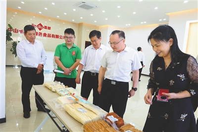 廣東省退役軍人事務(wù)廳黨組書記、廳長王創(chuàng)調(diào)研嘉都綠色食品有限公司。 梁華 攝