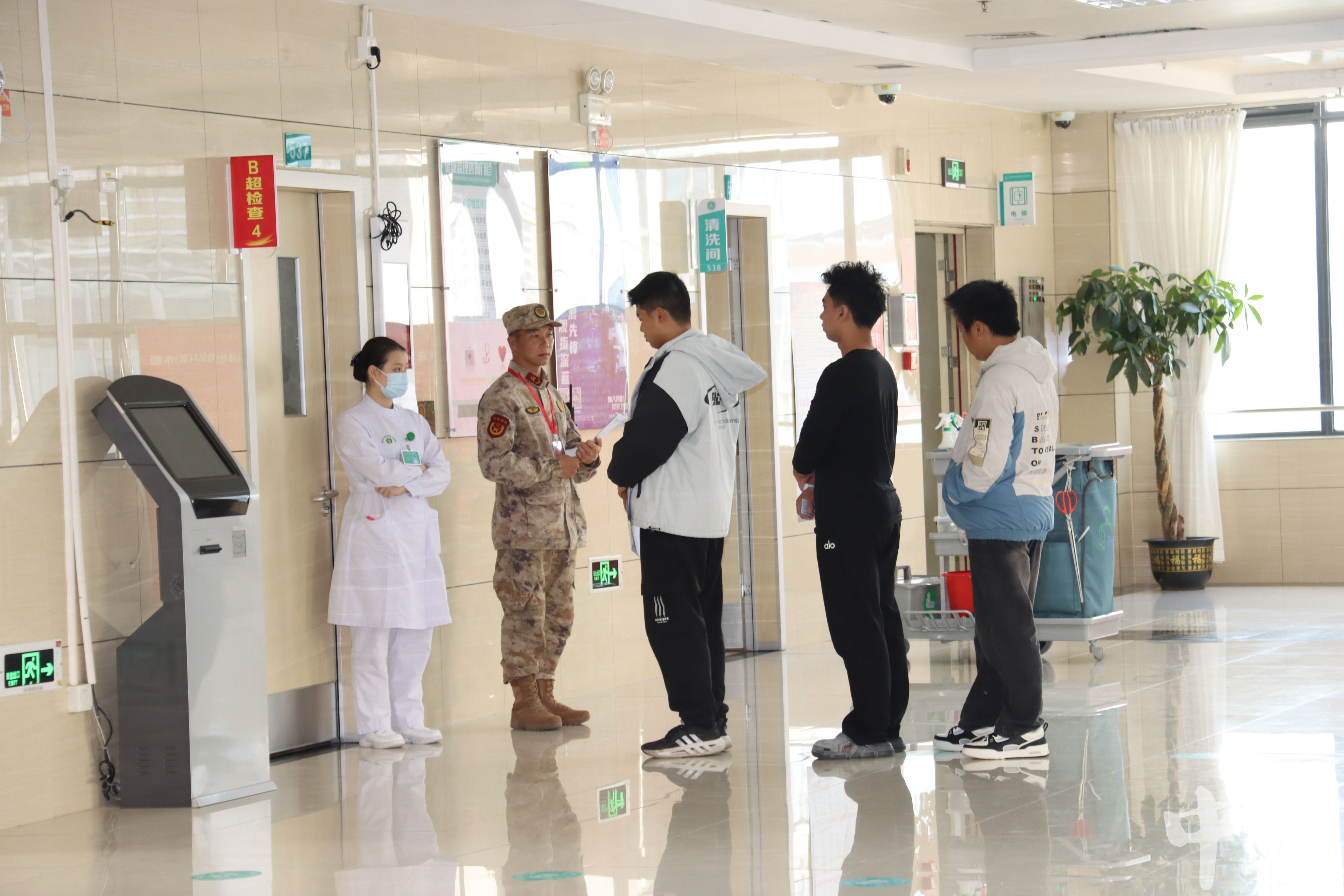 記者看到,體檢現(xiàn)場(chǎng)秩序井然,應(yīng)征青年們身著便裝、精神抖擻,在工作人員引導(dǎo)下,有序完成視力、抽血、耳鼻喉、口腔、B超、心電圖等項(xiàng)目檢查。檢查組一行詳細(xì)詢問(wèn)體檢工作組織流程、進(jìn)展情況及應(yīng)征青年的身體狀況等,深入各體檢科室查看操作規(guī)范,與應(yīng)征青年親切交流,對(duì)他們積極響應(yīng)國(guó)家號(hào)召應(yīng)征入伍表示贊賞。