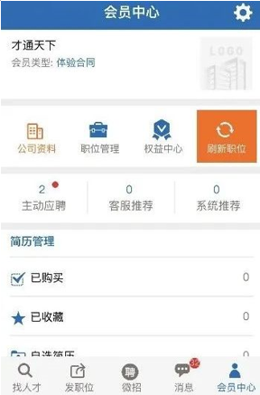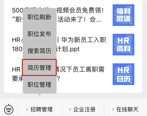 ▲發(fā)布職位流程 3、管理招聘 關注公眾號【國際人才網(wǎng)企業(yè)版】,在【招聘管理】菜單欄找到【簡歷管理】,即可查看主動應聘的求職者,并可發(fā)起溝通或邀約面試。