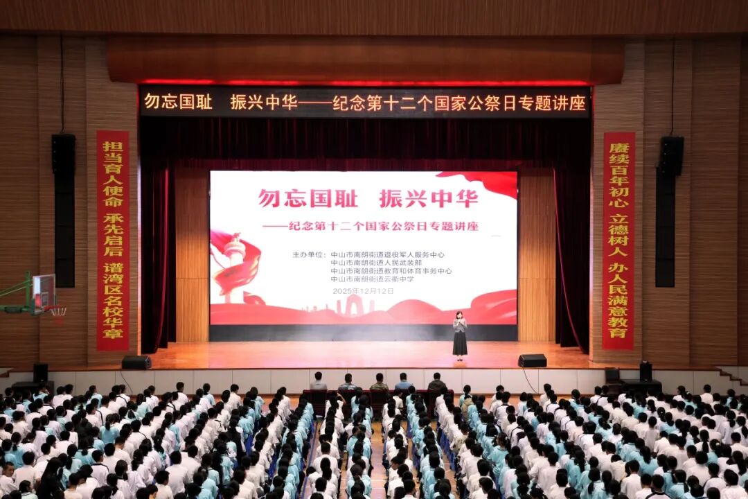 以史為鑒,砥礪前行。在第十二個(gè)南京大屠殺死難者國家公祭日即將到來之際,12月12日下午,中山南朗街道人民武裝部、退役軍人服務(wù)中心聯(lián)合南朗街道教育和體育事務(wù)中心在中山紀(jì)念中學(xué)教育集團(tuán)云衢中學(xué)開展愛國主義教育,700余名師生齊聚一堂,緬懷遇難同胞、傳承愛國精神。