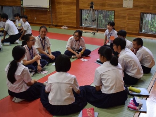 中山市華僑中學(xué)學(xué)生與櫻馬場(chǎng)中學(xué)生友好交談