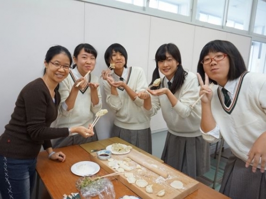 長(zhǎng)崎學(xué)生學(xué)習(xí)包餃子
