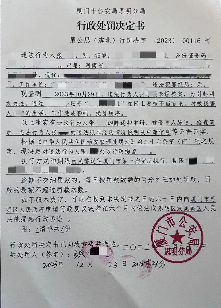 近期,編造散布謠言的張某(男,49歲,河南人)被廈門警方查獲。