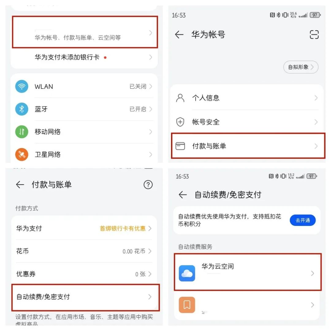 進入設(shè)置→華為賬號、付款與賬單、云空間等→付款與賬單→自動續(xù)費/免密支付→退訂App業(yè)務(wù)即可。