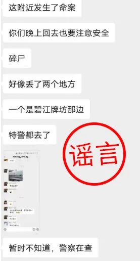 4月22日上午,網(wǎng)民莫某(男,28歲)在其小區(qū)業(yè)主群發(fā)布消息,稱“最近幾天碧江附近發(fā)生了命案”。隨后,該謠言被陳某(女,38歲)刷到,在未驗(yàn)證真實(shí)情況下,陳某將謠言轉(zhuǎn)發(fā)到聊天群,并發(fā)表“北滘發(fā)生碎尸案”等不實(shí)言論。最終導(dǎo)致多名網(wǎng)友在未經(jīng)證實(shí)的情況下,轉(zhuǎn)發(fā)謠言到多個(gè)微信群內(nèi),造成較惡劣的社會(huì)影響。