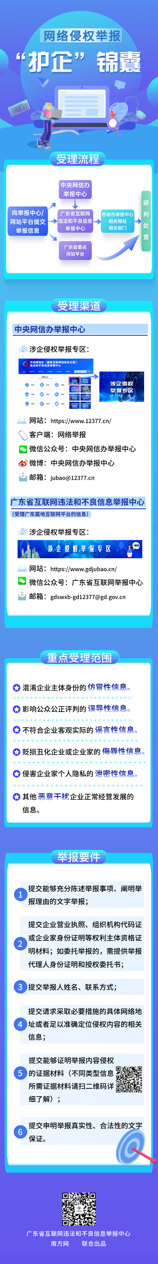 為有效助力企業(yè)維護(hù)自身網(wǎng)絡(luò)合法權(quán)益,廣東省互聯(lián)網(wǎng)違法和不良信息舉報(bào)中心精心準(zhǔn)備了“護(hù)企”錦囊,結(jié)合案例帶大家了解涉企網(wǎng)絡(luò)侵權(quán)信息的重點(diǎn)受理范圍,請(qǐng)持續(xù)關(guān)注并收藏好~