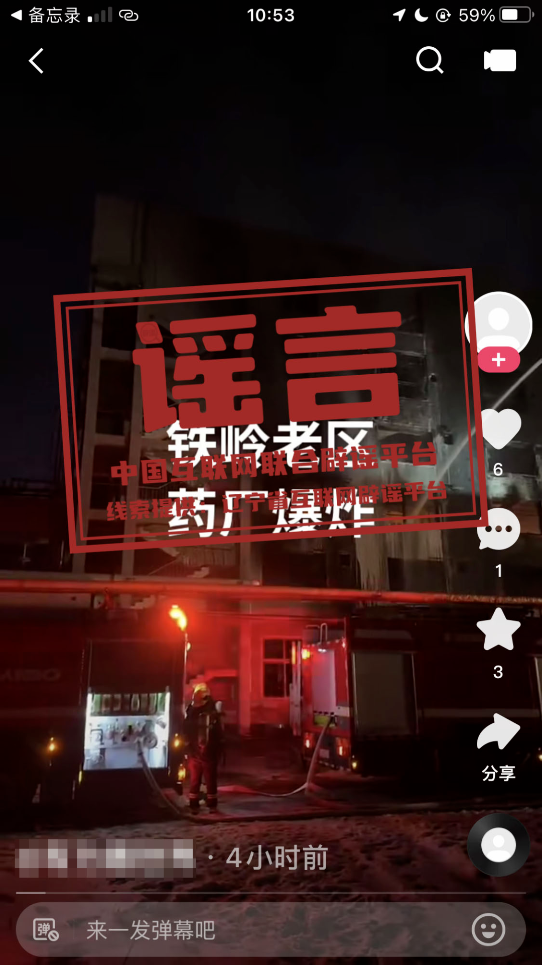 真相:近日,一網(wǎng)民在短視頻平臺發(fā)布信息稱“鐵嶺市銀州區(qū)某藥廠發(fā)生爆炸”,引發(fā)關注。經(jīng)遼寧省鐵嶺市公安局新城分局調(diào)查核實,某工廠當日下午一車間起火,相關部門迅速到場妥善處置,未發(fā)生爆炸。網(wǎng)民常某在未經(jīng)核實的情況下,將不實信息發(fā)布至網(wǎng)絡平臺,造成不良社會影響。目前,公安機關已依法對常某予以行政處罰。(來源:@平安鐵嶺)