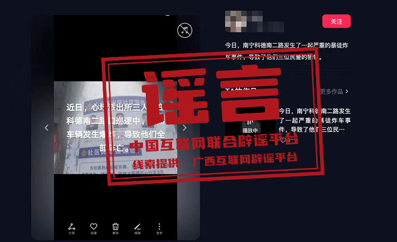 謠 言 廣西南寧某派出所車輛爆炸三人犧牲?