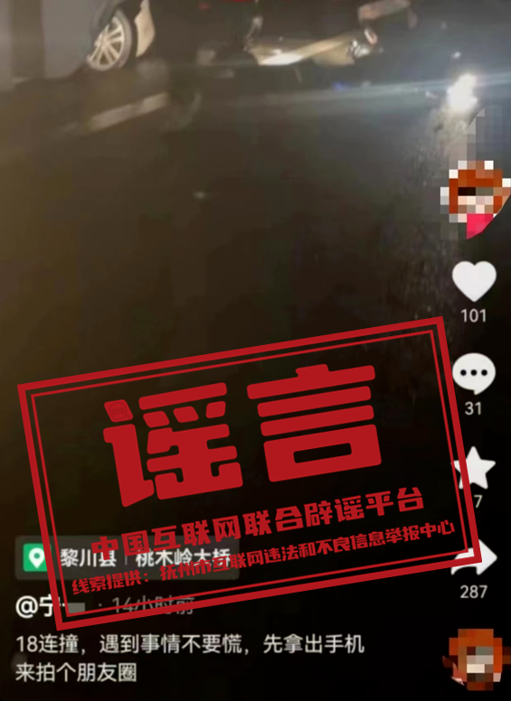 謠 言 江西黎川境內(nèi)高速路段發(fā)生18車連撞重大交通事故?