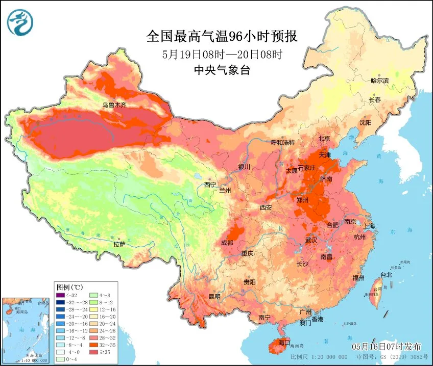 詳情:據(jù)中國(guó)天氣網(wǎng)消息,5月17日至19日,南疆盆地、華北平原、黃淮等地的部分地區(qū)將有35℃以上高溫,局地氣溫甚至可超37℃。省會(huì)級(jí)城市中,西安、鄭州、濟(jì)南都有望迎來(lái)今年首個(gè)高溫天氣,普遍早于常年,其中西安、鄭州將遭遇高溫“兩連擊”,公眾外出還需注意防暑降溫。而南方的暖熱程度遠(yuǎn)遠(yuǎn)不及北方,由于云量較多,多地還有雨水出沒(méi),氣溫普遍會(huì)低于常年同期,江南大部最高氣溫普遍在30℃左右,南北氣溫倒掛。(來(lái)源:中央氣象臺(tái)、@中國(guó)天氣網(wǎng))