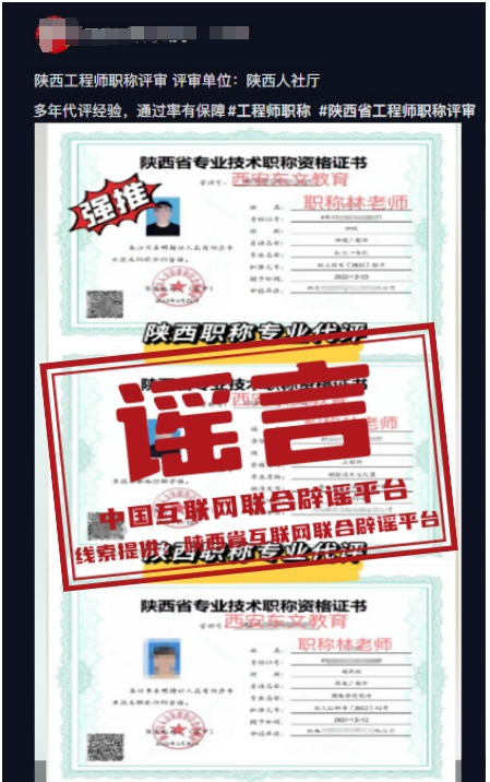 謠 言 只要繳納高額費用,陜西職稱評審“包過”?