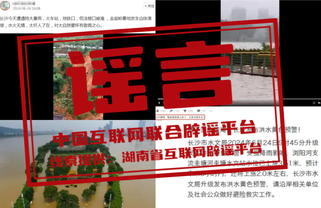 謠 言 長(zhǎng)沙暴雨致橘子洲頭被淹?金盆嶺烈士陵園坍塌?梅溪湖的魚都上岸了?
