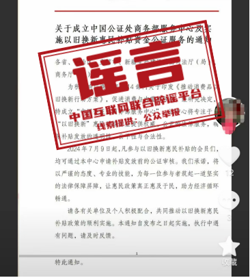 辟 謠 商務(wù)部發(fā)布聲明:從未發(fā)布《關(guān)于以舊換新惠民款補(bǔ)貼發(fā)放的公證通知》
