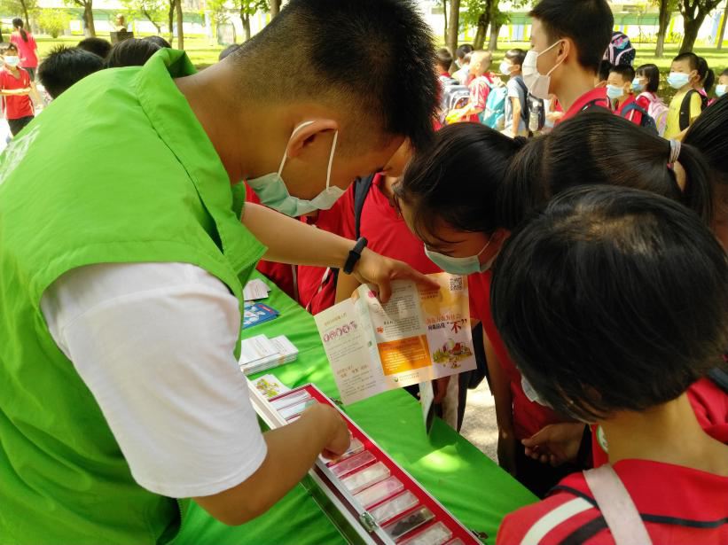 活動(dòng)現(xiàn)場,擺設(shè)有仿真毒品模型、VR眼鏡的攤位吸引了眾多學(xué)生。社工熱情地向?qū)W生講解了毒品的危害和防范新型毒品的有關(guān)知識(shí),呼吁同學(xué)們要遠(yuǎn)離毒品,珍愛生命。