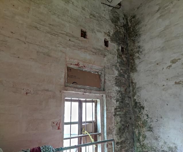 當(dāng)天下午,兩名向日葵社工來(lái)到了阿耿家中,阿耿看到社工的到來(lái),仿佛看到了希望的曙光。阿耿家非常的破舊,是一幢年久失修的紅磚房,門窗都是木頭制成的,已經(jīng)破爛不堪。進(jìn)到房子里面,看到阿耿現(xiàn)在是把廚房用具搬到了客廳,本來(lái)就小的客廳顯得更加的擁擠。幾句寒暄過(guò)后,阿耿帶社工去到出現(xiàn)漏水情況的房間,一進(jìn)到房間,社工就發(fā)現(xiàn)房間墻身已經(jīng)出現(xiàn)了非常嚴(yán)重的發(fā)霉情況,甚至有部分墻壁還長(zhǎng)出了青苔,阿耿說(shuō):“這已經(jīng)出現(xiàn)很長(zhǎng)一段時(shí)間了,前段時(shí)間下雨,墻壁一直滲水,這個(gè)房間原本是我住的房間,因?yàn)闈B水情況越來(lái)越嚴(yán)重,就搬到旁邊原來(lái)作為廚房的房間居住,而且窗戶的玻璃都已經(jīng)全部掉落了,現(xiàn)在這個(gè)房間已經(jīng)完全不能住人了?!卑⒐⒄f(shuō)完,就告訴社工還有另一處漏水的地方。看到另一處漏水的地方,社工發(fā)現(xiàn)墻壁因長(zhǎng)期滲水導(dǎo)致墻面剝落且墻體分離,到處都是霉斑。阿耿表示,這是漏水情況最嚴(yán)重的房間,房子的其他地方也出現(xiàn)了不同程度的漏水,隨后,阿耿把社工帶到客廳,把其他漏水的地方和情況也向社工反饋。社工看到阿耿現(xiàn)在居住在如此破爛的房子,不禁感到一陣酸楚,同時(shí)也跟阿耿商討著怎樣去解決漏水的問(wèn)題。