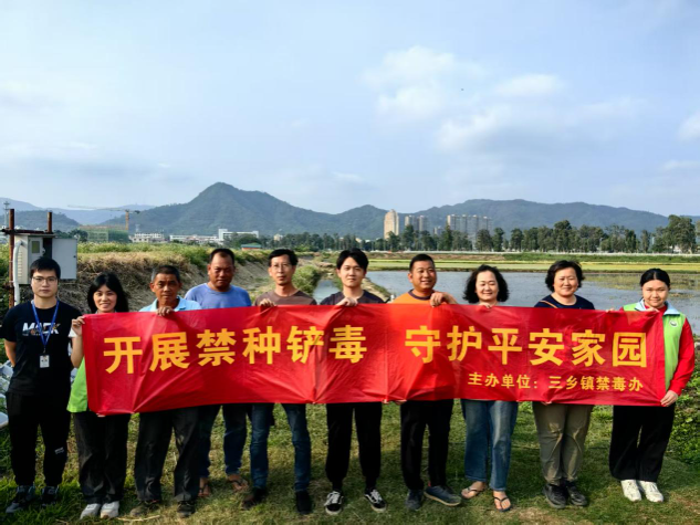 春季是毒品原植物種植的高發(fā)期,為鞏固擴大禁種鏟毒工作成果,確保毒品原植物“零種植”,4月9日,三鄉(xiāng)鎮(zhèn)平安法治辦聯(lián)合鎮(zhèn)農業(yè)農村局深入轄區(qū)農場,開展“禁種鏟毒 守護凈土”禁毒宣傳活動。