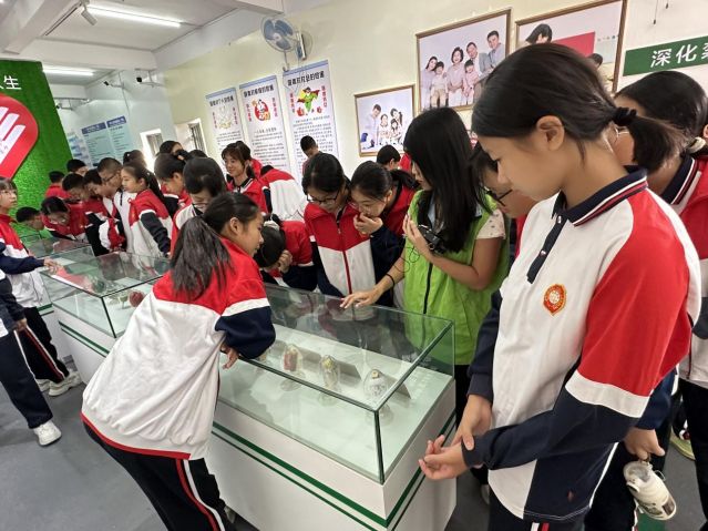 活動現(xiàn)場,禁毒社工帶領學生們進入禁毒教育基地,通過通俗易懂的語言,為學生們講解了中國禁毒史、毒品的種類、毒品對人器官的危害等知識?;顒又?,部分學生對毒品仿真品表現(xiàn)出濃厚興趣,他們相互觀察、深入交流新型毒品的偽裝包裝樣式與特征。通過這些互動環(huán)節(jié),有效激發(fā)了學生們學習禁毒知識的熱情,促使他們樹立起“健康認知,綠色無毒”的正確理念。